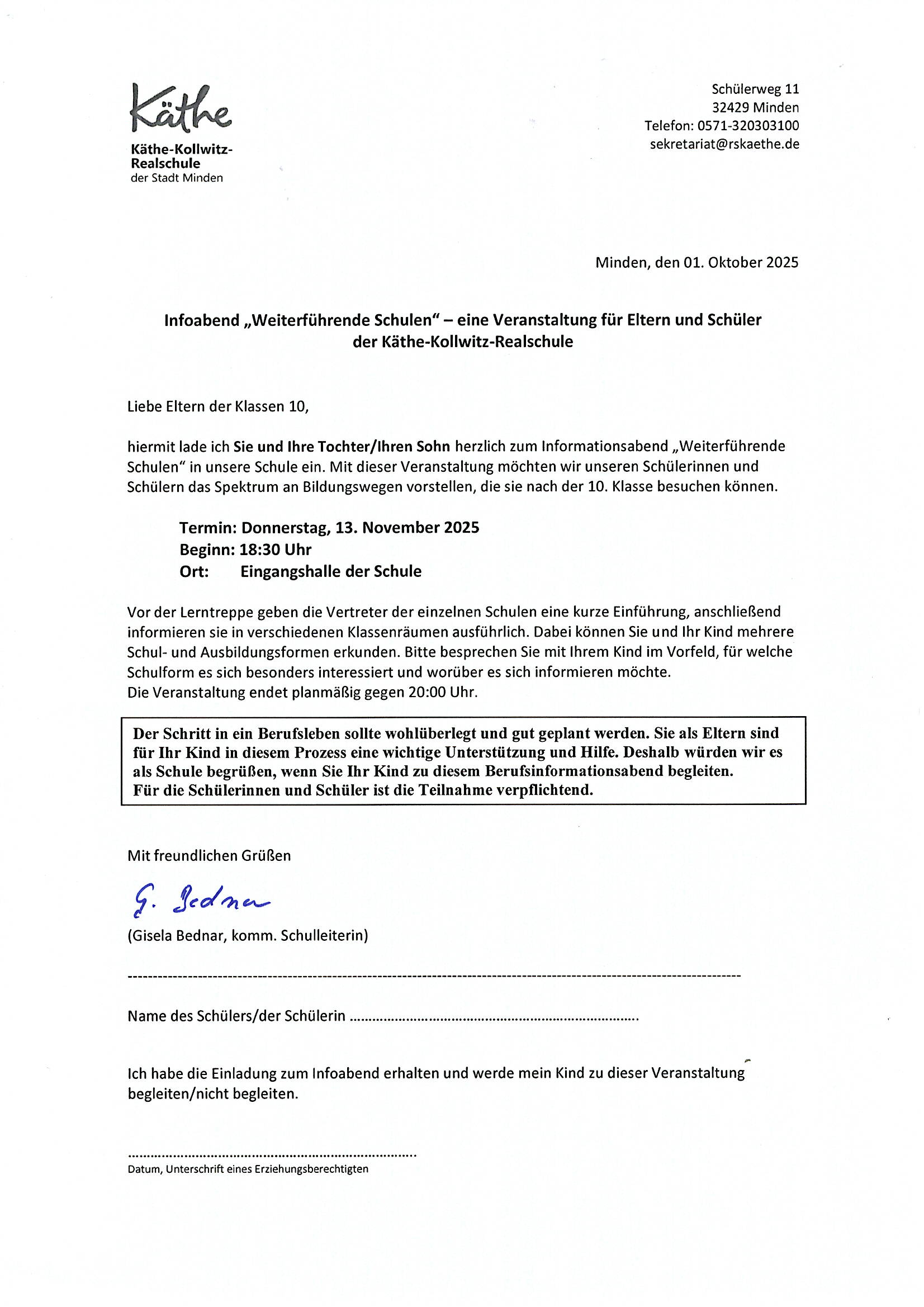 Da es bei allen Schülerinnen und Schülern um den Schulabschluss geht, hoffen wir auf zahlreiche Gespräche.
