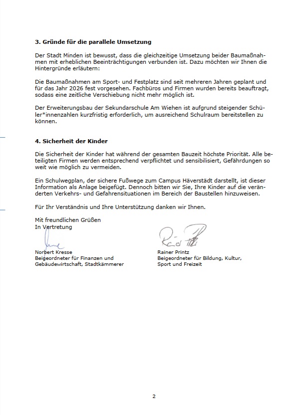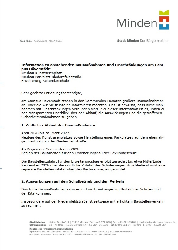 Information zu anstehenden Baumaßnahmen und Einschränkungen am Campus Häverstädt